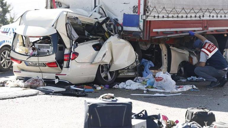Ankara'nın Gölbaşı ilçesinde, park halindeki TIR'a arkadan çarpan, gurbetçi ailenin bulunduğu otomobildeki 2'si çocuk 5 kişi yaşamını yitirdi.